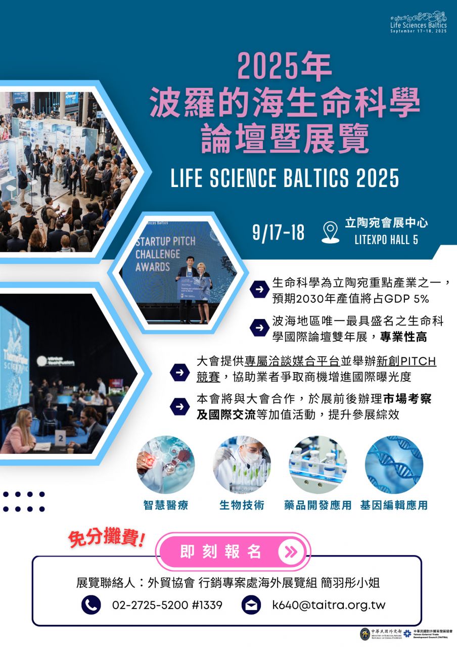 生命科學為立國近年成長最快速之產業之一,「波羅的海生命科學論壇暨展覽」作為歐洲東北部最具盛名之生命科學雙年展,2023年計有33國82家生技企業及39個學術單位參展,並吸引785名高度專業買主參觀。