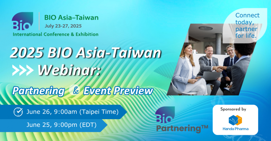 BIO Partnering™ enables efficient, double opt-in meeting scheduling allows you to schedule onsite and virtual meetings in your time zone to maximize your business development and licensing potential. Featuring simple video conferencing and more biotechnology-specific search filters & therapeutic categories than any other biotech partnering platform, BIO Partnering™ is your business development companion.Virtual meetings in your time zone on July 22-23, and onsite meetings at the Taipei Nangang Exhibition Center Hall 1 from July 24 to July 26.