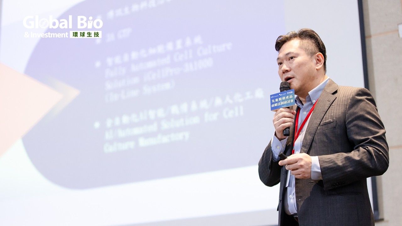 博訊生物科技營運長杜長宏介紹,博訊生技是台灣第一間有能力自主建置智慧自動化細胞備製設備的生技公司。他強調,目前已經實現細胞備製全自動化,可透過「3A GTP」完整解方提供CDMO細胞備製代工服務,3A包含全自動化(AUTO)、智慧化(AI)以及虛擬擴增實境(AR),工廠可以無人化24小時不間斷生產。