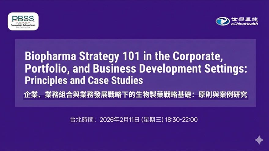 【2月11日18:30】企業、業務組合與業務發展戰略下的生物製藥戰略基礎:原則與案例研究2026年2月11日18:30,由國際醫藥與生物科學學會(PBSS)主辦,美國威爾遜律師事務所贊助、EmeryPharma聯合贊助舉辦的「企業、業務組合與業務發展戰略下的生物製藥戰略基礎:原則與案例研究」研討會,將於線上開啟。在生物製藥這場技術、資本與監管交織的高強度競賽中,如何構建並執行一套制勝戰略?生物製藥...