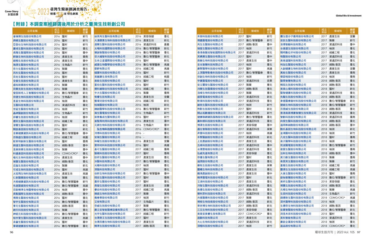 Vol. 105 2023臺灣生醫新創調查報告