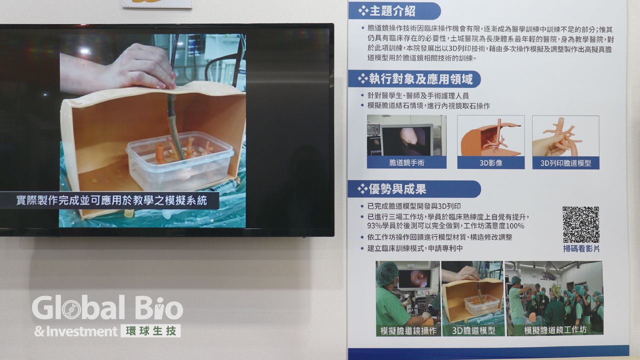 • 長庚醫療財團旗下土城醫院團隊開發出膽道鏡手術模擬系統,模擬膽道結石情境,訓練學生、醫師和護理人員進行內視鏡取石操作,目前正在申請專利中。(攝影/吳培安)