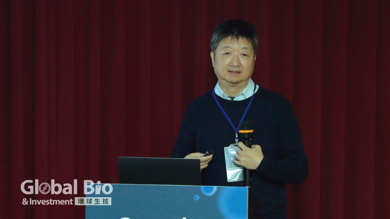 Esco Aster技術長張景明分享,其公司已開發出全球唯一兼具3D培養、高效收集細胞,能一路放大量產的細胞培養系統。(攝影/李林娜)Esco Aster張景明»